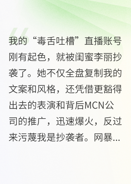 这只是第一步。想要彻底摆脱霸凌,必须让所有人看清白若溪的真面目,而证据,
